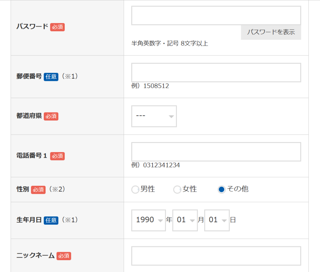 届いたメールのURLをクリックしたら、必要事項を入力していきます。